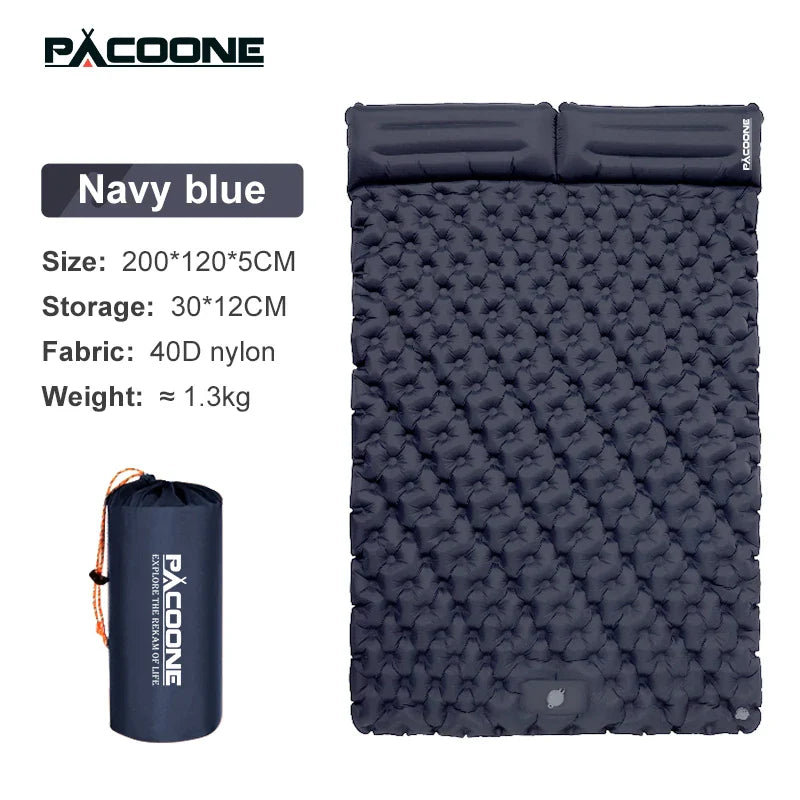 Experience comfort and convenience in the great outdoors with the PACOONE Outdoor Camping Double Inflatable Mattress. Perfect for couples or solo adventurers seeking extra space!