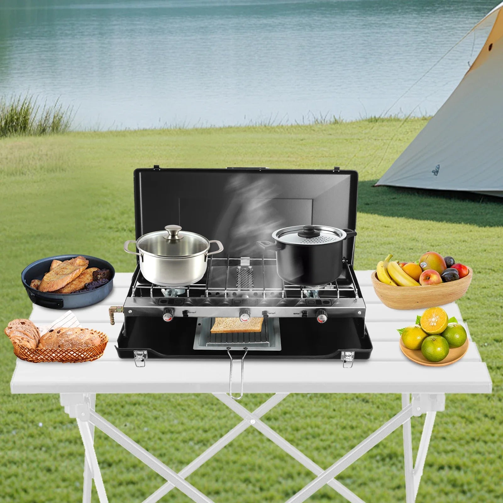 Experience the joy of outdoor cooking with the Durable Campfire Grill, featuring three high-power burners. Ideal for camping enthusiasts and outdoor chefs who demand quality and performance.