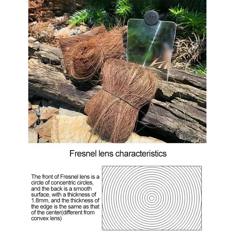 Harness the power of the sun with this compact and efficient Magnifying Glass Card Fire Starter, perfect for outdoor enthusiasts, campers, and survivalists!