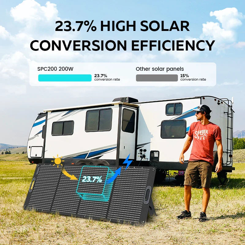 - Comes with a 200W solar panel for efficient solar charging, ideal for eco-friendly energy use
