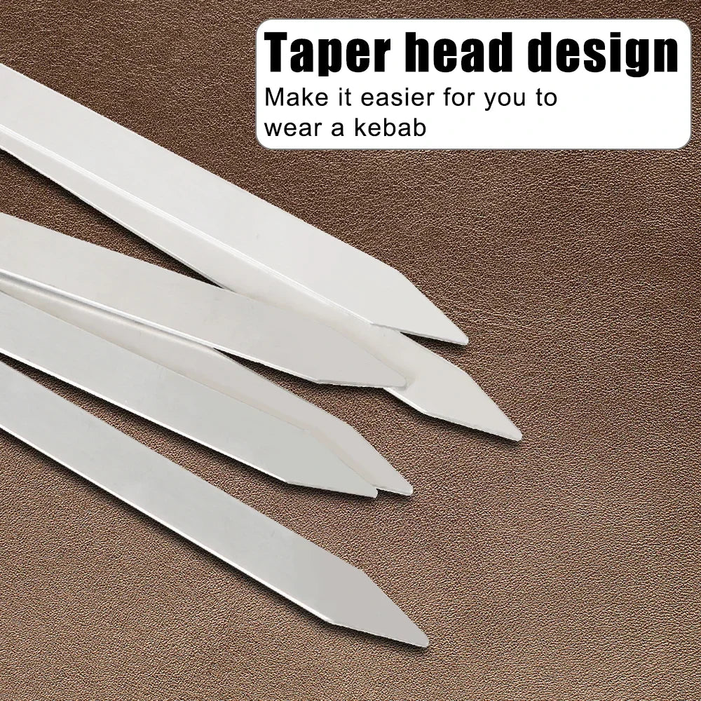 Includes 6 wide skewers designed to hold a variety of foods securelyFlat BBQ fork design prevents food from rotating for even cookingMade from high-quality stainless steel for long-lasting useEach skewer measures approx. 40cm – ideal for grilling meats, vegetables, and moreEasy to clean and reusable, making them eco-friendly kitchen accessoriesPerfect for outdoor camping, picnics, or backyard BBQsGreat for both professional chefs and home cooks who love to grill