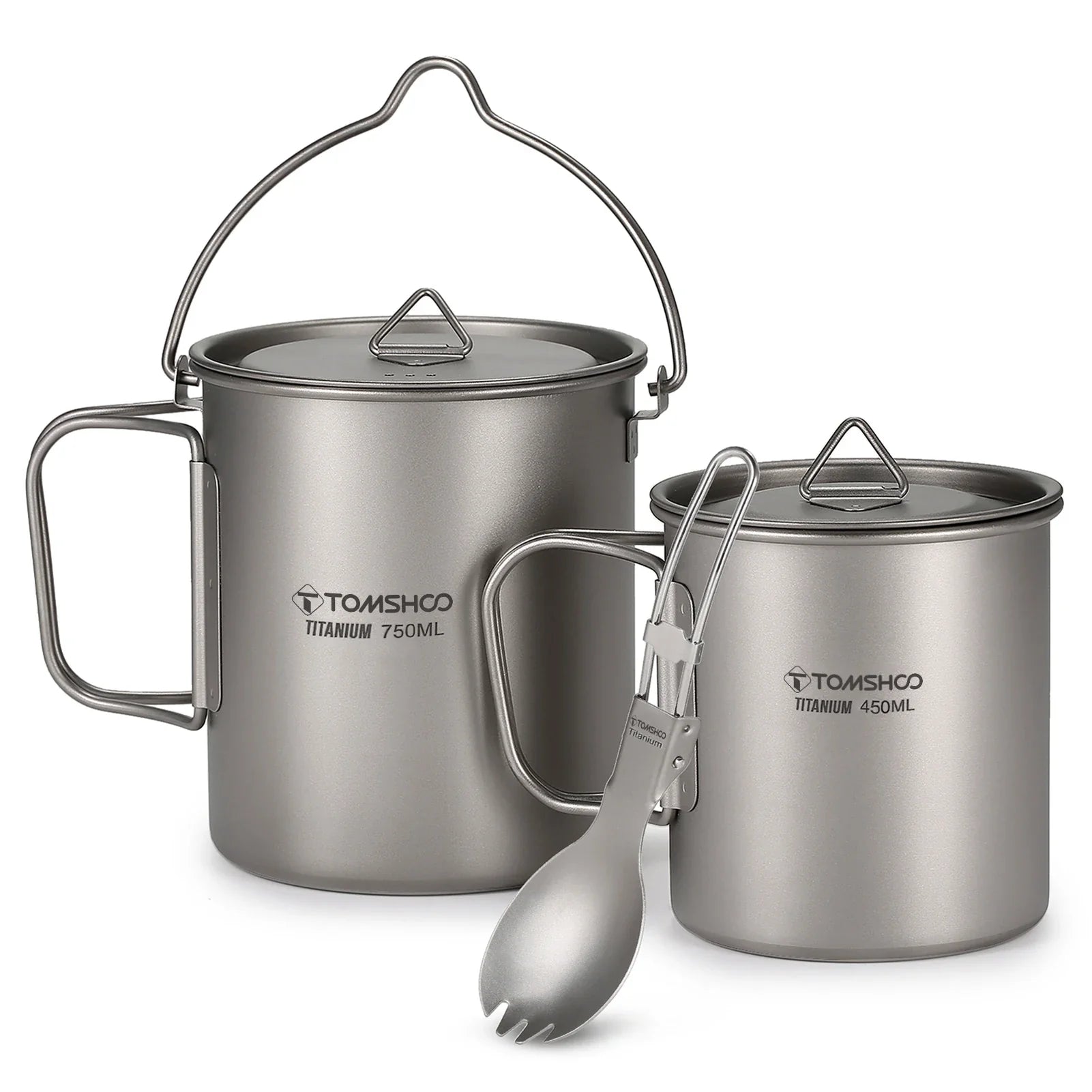 Tomshoo 3 PCS Titanium Cookware Set – Ultralight Camping Essentials